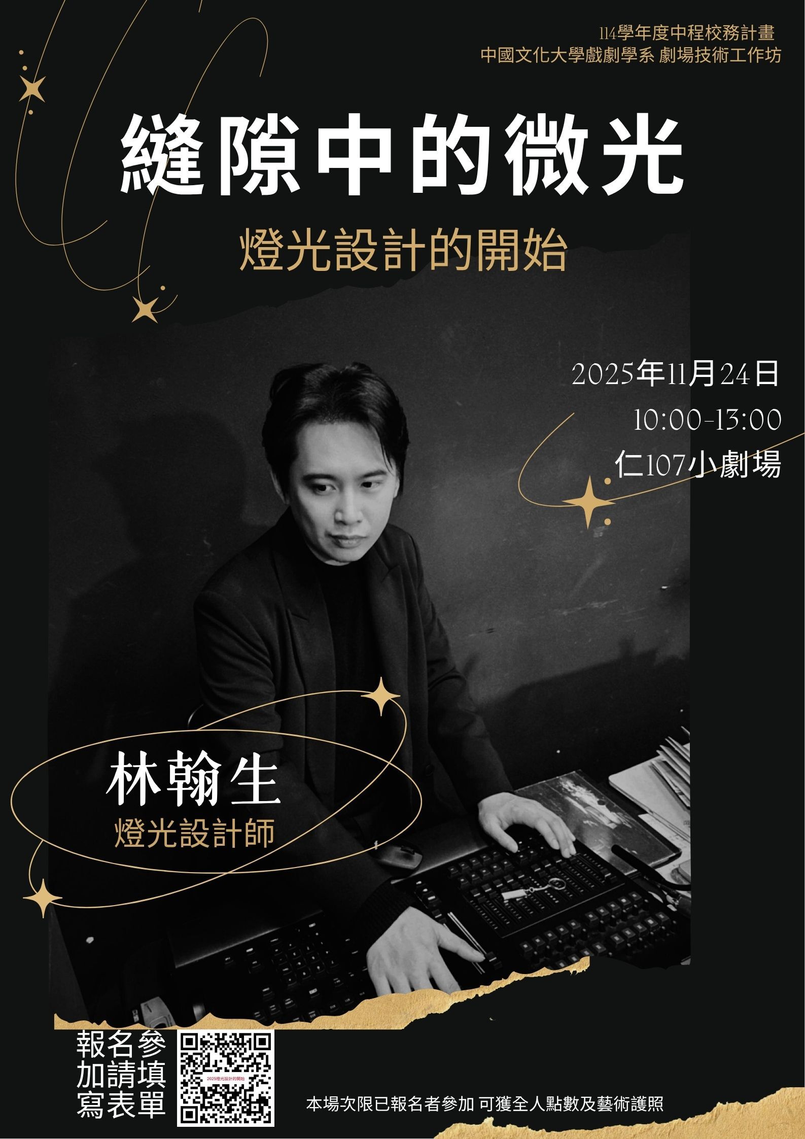 2025劇場技術工作坊「縫隙中的微光 - 燈光設計的開始」即日起開始報名